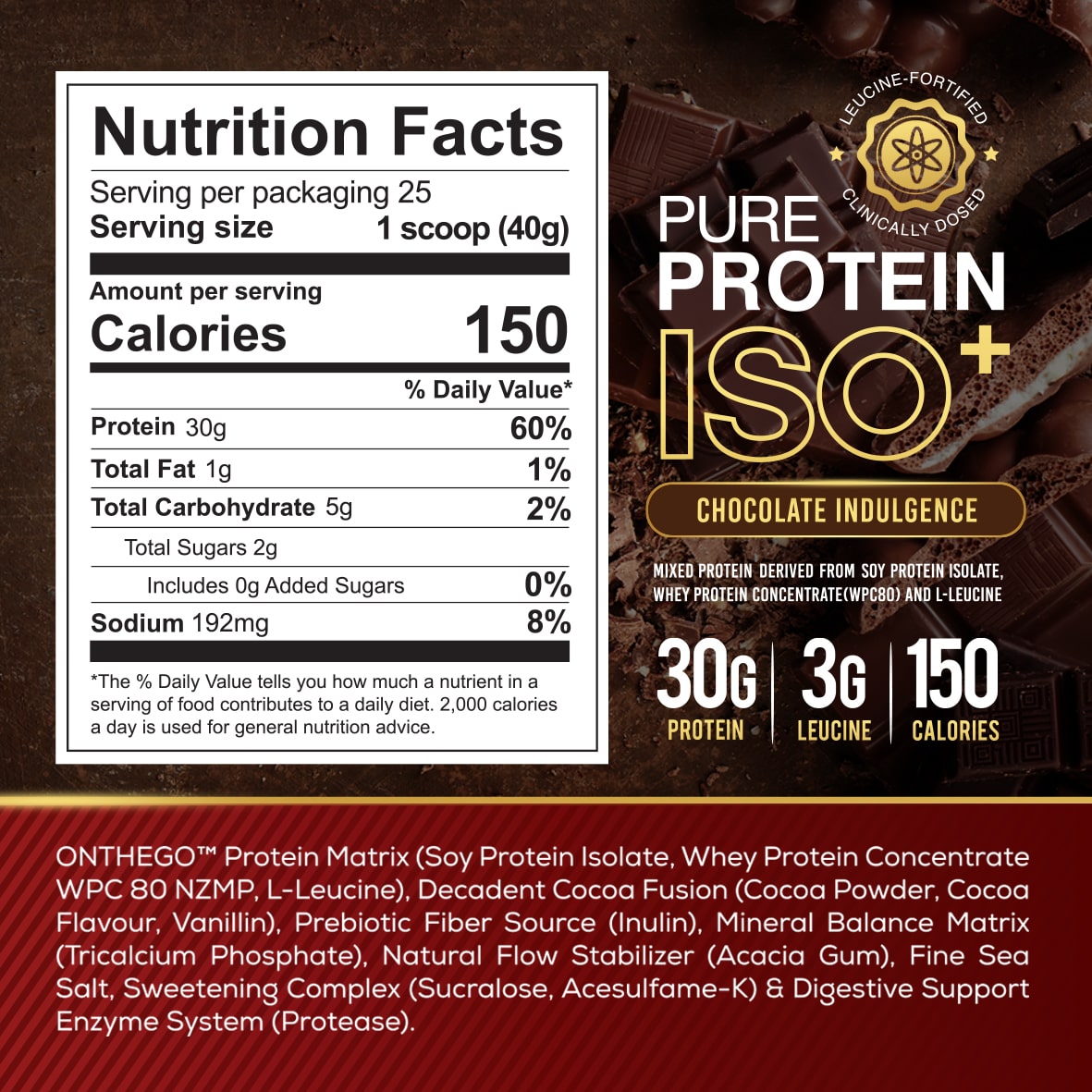 Enhanced with added Leucine, ISO+ helps maximize muscle protein synthesis making every scoop more effective for your daily protein target and training progress.