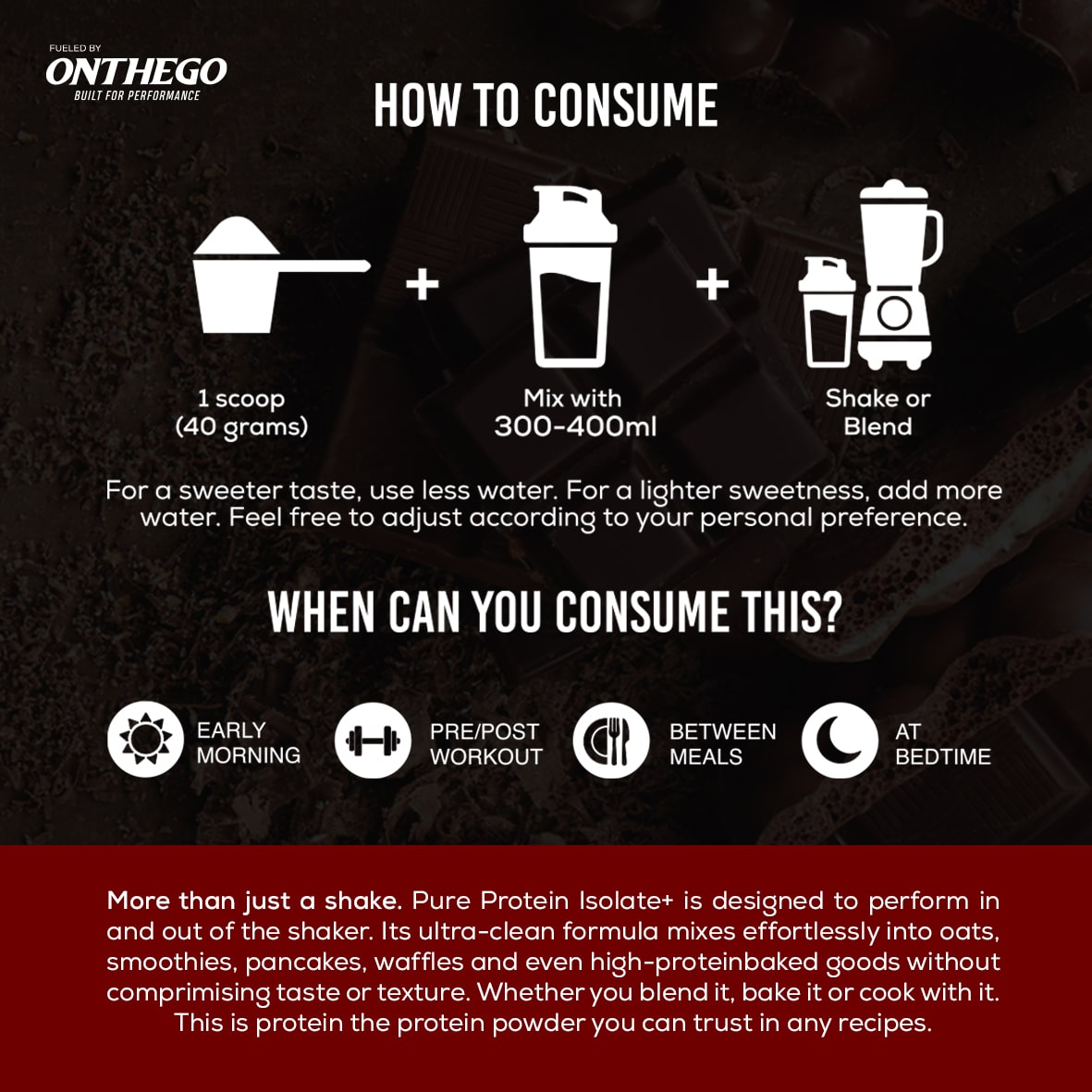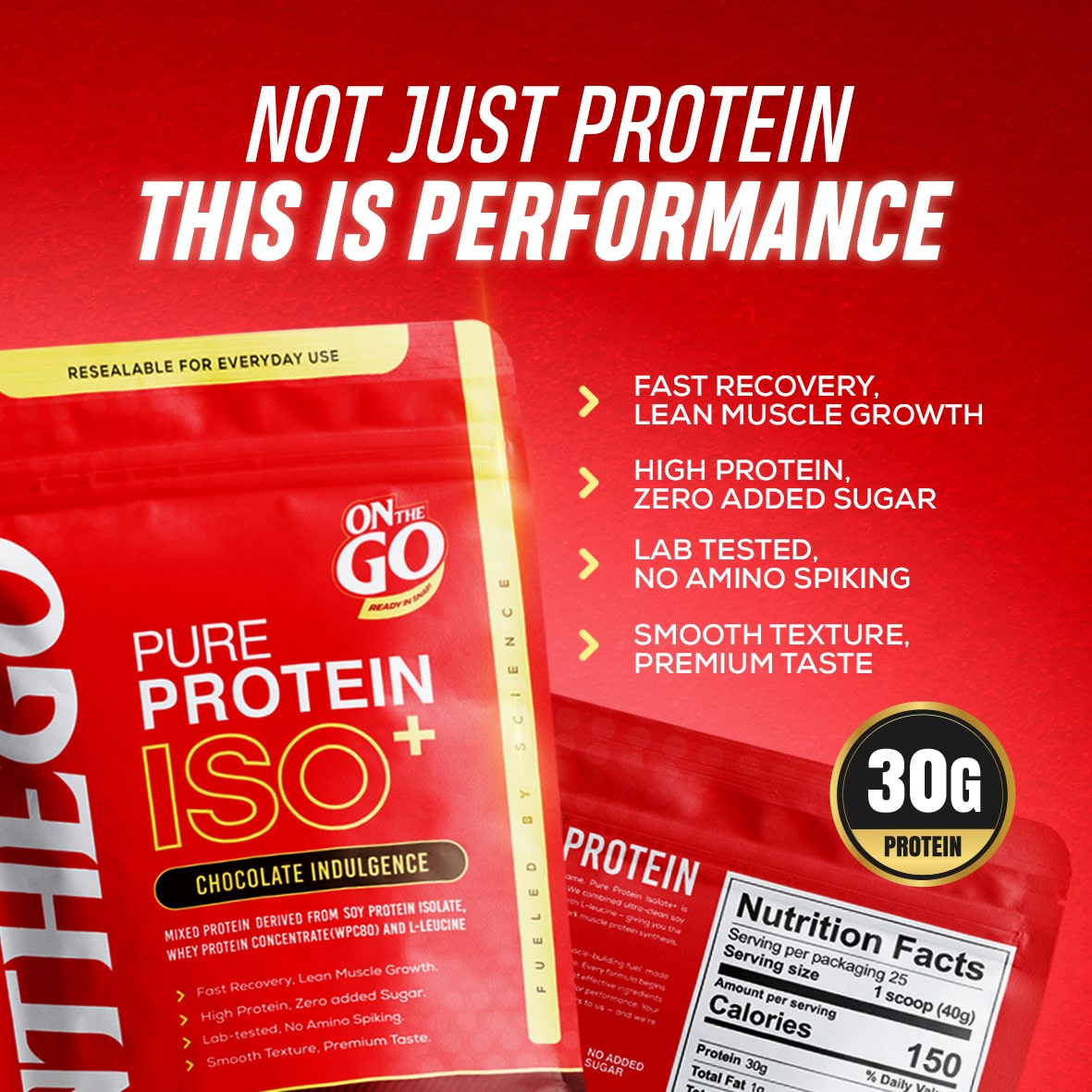 ONTHEGO PURE PROTEIN ISOLATE+ is a premium high protein formula built for performance and real results. Each serving delivers a solid 30g protein to support lean muscle growth, strength, and faster recovery.